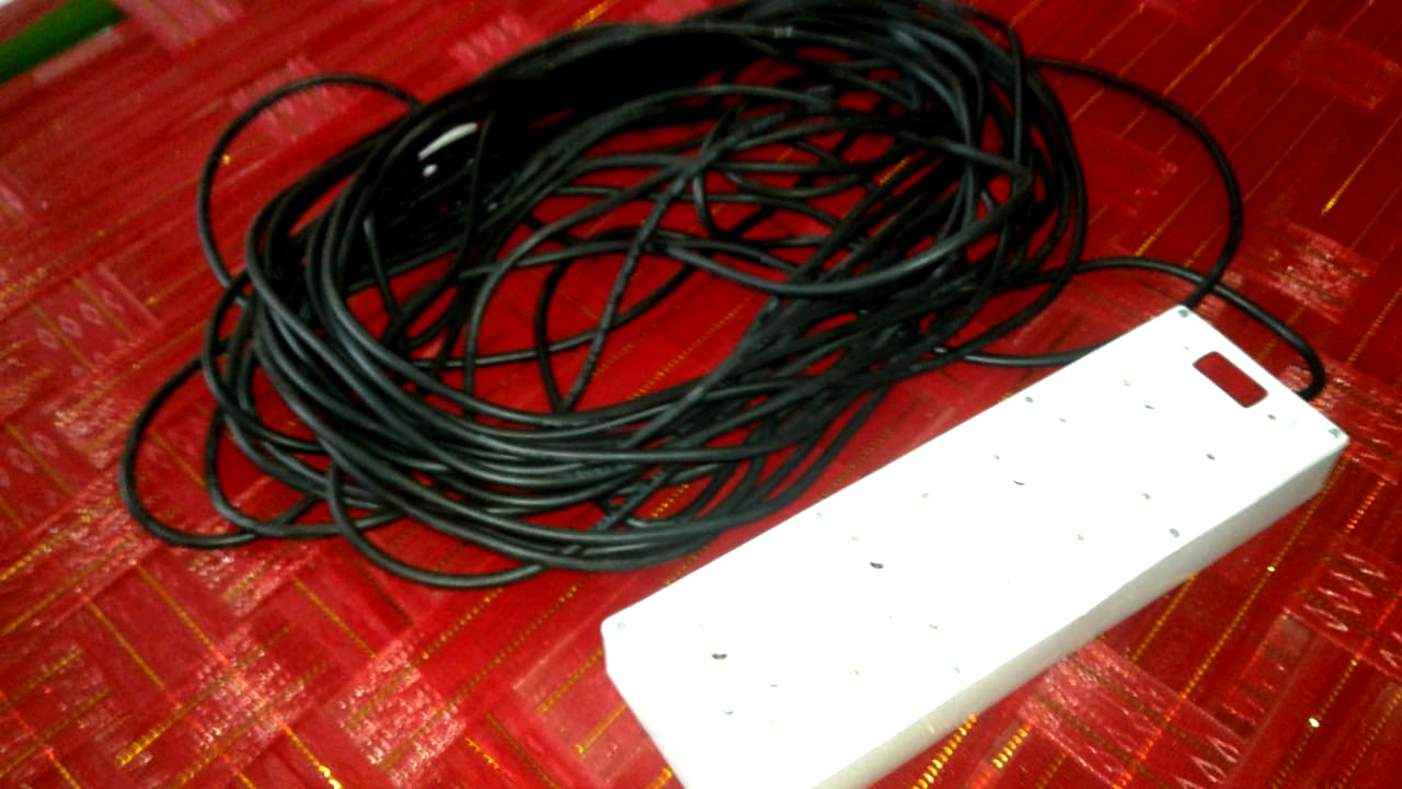 We have an extension cord that is 30 metres (!) long. This is necessary because in government colleges not all the rooms have electric connections. In one of our recent visits, there was power and a plug point only in the Principal’s room in the entire college, and the long extension cord saved us.
